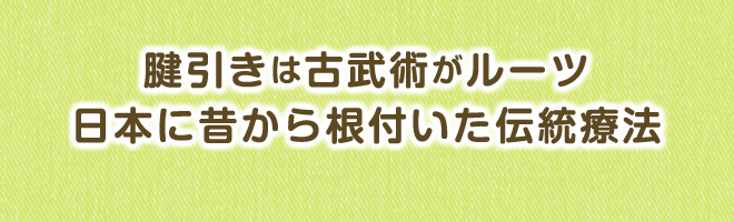 筋整流法(古式腱引き療法)は、古くから伝わる古武術の流れをくんでいます。