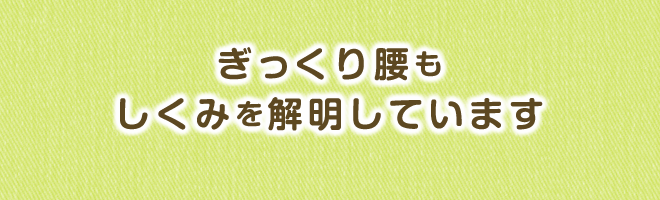 ○ぎっくり腰の仕組みがわかった方法でぎっくり腰の改善に効果をあげています。